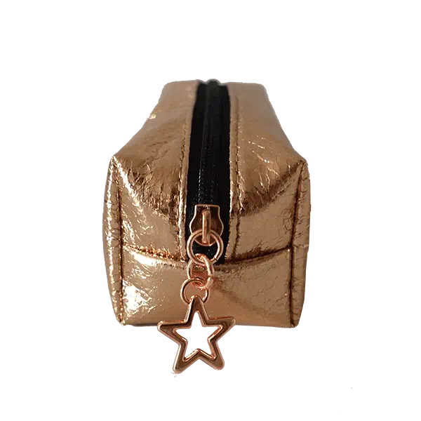 Gold crack texture cosmetic bag with star puller