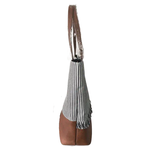 Stripe fabric fringe handbag