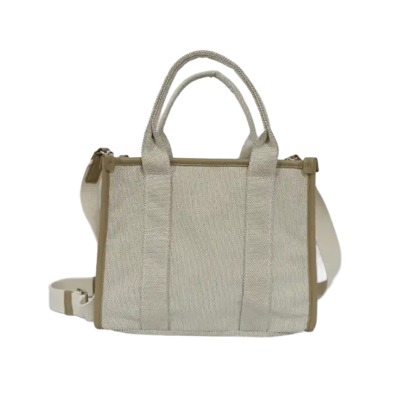 Одной из примечательных особенностей мини-сумки Two Tone Canvas является ламинирование на обратной стороне холста. Этот дополнительный слой обеспечивает дополнительную защиту от влаги и пролитой жидкости, обеспечивая долговечность и целостность сумки. Он также придает интерьеру гладкую и гладкую поверхность, облегчая его чистку и уход.