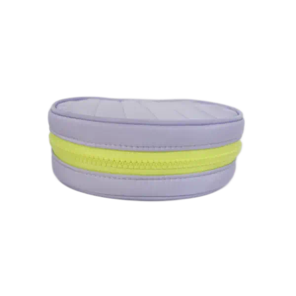圓形絎縫間棉再生聚酯纖維春亞紡帶手把化妝包化妝盒